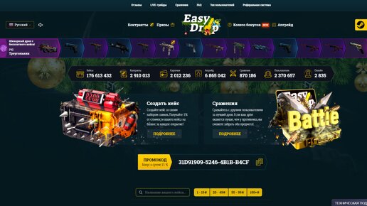 Многие любят испытывать свою удачу, открывая кейсы. Сегодня я представлю вам топ-5 сайтов для открытия кейсов в CS:GO. Перед тем как перейти на сайт, обязательно проверьте домен, так как в наше время существует много мошеннических сайтов, созданных с целью украсть ваш аккаунт Steam. EASYDROP (Изи Дроп) Этот сайт уже давно зарекомендовал себя как надежный ресурс для открытия кейсов. Он начал свою работу в 2015 году и с тех пор радует игроков качественными скинами. Кроме стандартных кейсов, здесь также доступны режимы "Контракты", "Сражения", "Апгрейд" и "Карточки"...
