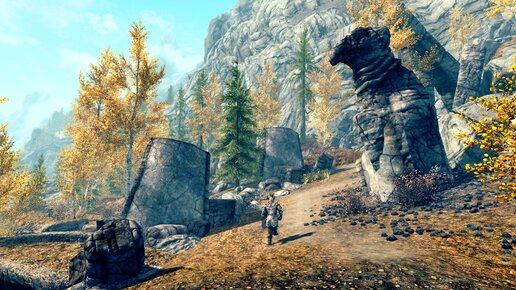 Главный сюжет игры. …Герой оказался на небольшой площадке, куда-то вниз вели ступени. По краям лестницы стояли высоченные каменные фигуры – монахов? Спустившись вниз, Довакин обернулся. Статуи будто следили за ним – теперь они были повёрнуты в его сторону… - Ну, не нападают, и ладно; - сплюнул сквозь зубы герой и двинулся дальше. Впереди путь застилал густой туман. Первый, кто ему встретился – солдат Братьев Бури (верней, его душа), который поэтично пояснил всё происходящее: …Едва Довакин отошёл от него, с небес донёсся рык...