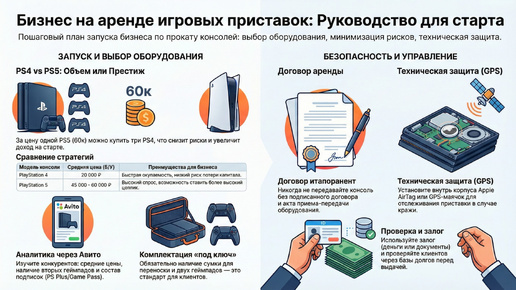 Бизнес на аренде игровых приставок — это популярная ниша, которая привлекает низким порогом входа и возможностью получать пассивный доход, однако она сопряжена с серьезными рисками мошенничества и краж. Основываясь на предоставленных источниках, можно составить подробное руководство по организации этого дела, от выбора оборудования до защиты активов. Выбор оборудования и стратегия закупки Первый вопрос, с которым сталкивается предприниматель, — что покупать. Опыт показывает, что PlayStation пользуется...