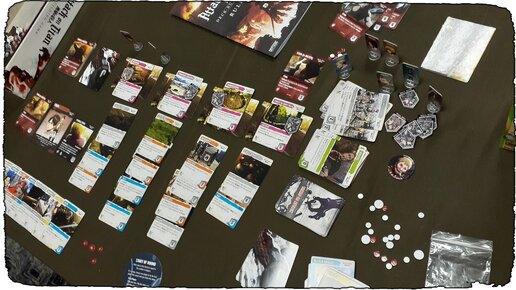 23.07.2019 С одноимённым аниме у меня сложились довольно теплые отношения. Я вообще не фанат всего этого, но сюжет затянул, и я на одном дыхании посмотрел все три сезона. Теперь вот жду четвертый, специально не читаю мангу. Племяшка моя тоже обожает «Атаку титанов» и когда Коля выставил на продажу эту настолку, я сразу её выкупил у него, чтобы потом с ней вместе и поиграть. Проблема была лишь в английском языке, потому что на картах присутствует много текста, и он не всегда простой. И у меня с этим делом не очень...