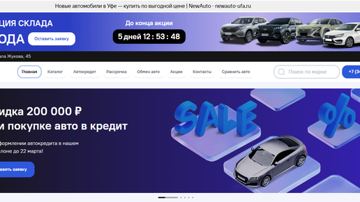 New Auto Ufa — это автосалон в Уфе. Занимается продажей новых автомобилей. В работе дилера обнаружены подозрительные моменты. Больше интересного — в нашем обзоре. В автосалоне на Маршала Жукова 45 в Уфе можно купить новый автомобиль. По крайней мере, так указано на сайте, который активно «крутится» в рекламе. Однако по данному адресу находится автосалон, в котором продаются авто с пробегом, — Plaza. На основании этого, к салону, сайт которого сейчас активно продвигается, у нас есть большие вопросы...