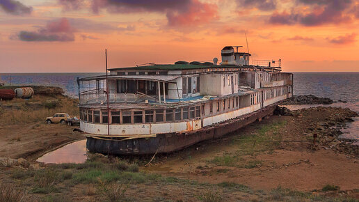 В Судаке, недалёко от мыса Меганом вот уже двадцать лет к ряду ржавеет на отмели дизельный речной теплоход Князь Багратион. Что речной теплоход делает на морском берегу? Это долгая история, поэтому начнём самого начала. Корабль был спущен на воду и освящён в 1913 году в присутствии самого царя Российской Империи, Николая II. Из построенных Коломенским Судостроительным Заводом одиннадцати теплоходов этой серии до наших дней сохранился всего лишь один — теплоход — «Князь Багратионъ». Сейчас он, хоть и выглядит заброшенным, но находится на частной территории за невысоким забором...