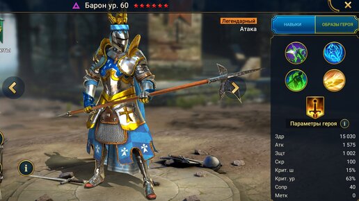 В этом гайде мы рассмотрим героя Барон, которого все игроки могут получить из темных осколков. Барон - Легендарный герой атаки темной стихии из фракции Баннереты. Навыки: 1. Пробивной удар - Атака по врагу. Если цель погибает, остаточный урон переносится на остальных врагов. Урон зависит от АТК. 2. Дребезги - Атака по врагу. Накладывает Штраф защиты 60% на 2 хода. Этот штраф гарантирован. Урон зависит от АТК. Перезарядка 4 хода(с книгами 3 хода). 3. Праведный натиск - Атака по врагу. Урон увеличивается в зависимости от количества бонусов...
