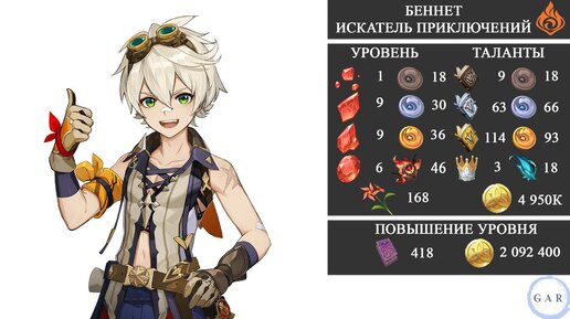 Беннет — ⭐⭐⭐⭐ герой. Основное оружие Беннета — одноручный меч. Глаз бога — Пиро Оглавление: Характеристики Сильные стороны: Слабые стороны Сколько примерно нужно набрать Восстановления Энергии, в зависимости от того сколько в ротации ешек приходится на одну ульту и есть ли в команде Пиро-ДД: Сколько Атаки дает Беннет с С1, уровень 90: Список подходящего оружия для Беннета: Бонус элементального урона +12-24%. Оружие наделяется силой Эмблемы рассекателя тумана – 1-го, 2-го или 3-го уровня, что дает нам 8%, 16% , 24% дополнительного элементального урона соответственно...