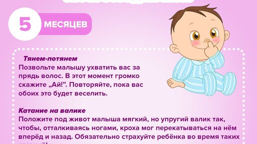 Рассказываем про пять несложных игр с малышом в 6-7 месяцев, которые помогут развить моторику, внимательность, изучить фактуру и свойства предметов и просто весело провести время вместе со своим ребенком. Игра 1. Показ игрушек и действий с ними. Первая часть. Сначала привлеките ребенка к игрушке. Если игрушка издает звуки, продемонстрируйте их малышу. Если малыш ползет к игрушке или хочет сесть, чтобы поиграть с ней, помогите ему. Вторая часть. Пусть малыш сам взаимодействует с игрушкой, обследует ее со всех сторон...