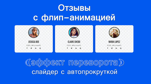 Карусель отзывов с флип-анимацией (эффект переворота) на Bootstrap 5