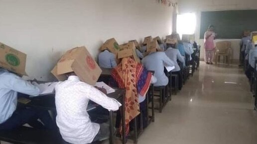 Экзамены с коробкой на голове. И это не в России!