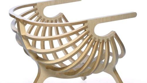 Креативное кресло своими руками из фанеры (чертежи, фото) Креативное кресло своими руками из фанеры (чертежи, фото) Чтоб сделать подобное кресло, понадобится всего один лист фанеры 1250 х 2500 мм, ручной фрезер, кромочная фреза к нему и клей.