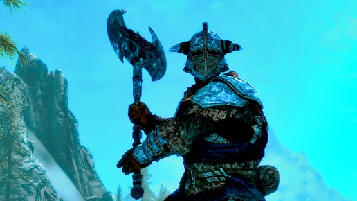 Броня и оружие Скайрима. Эту броню Довакин получает, пройдя квест «юбилейки» «Древний Лёд». Внешне броня смотрится не так празднично, как оригинальные сталгримовые доспехи, но в этом и весь смак. Потёрто – помызганные вещи выглядят в игре более атмосферно. И даже без улучшений доспехи имеют довольно хорошие характеристики по прочности...