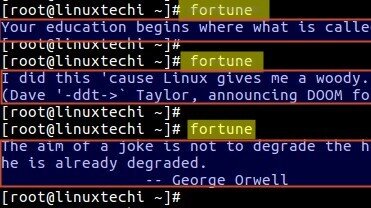 Можно получать случайные цитаты и забавные предсказания с помощью команды fortune. При этом необходимо чтобы на вашу систему был установлен пакет fortune ...
