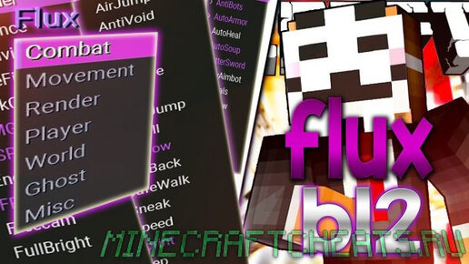Чит-клиент Flux — самый популярный чит для Minecraft 1.8.X. Этот агрегатор функций множества лучших читов получил огромную поддержку и популярность за то, что все это работает без багов. Флюкс используют на Hypixel, Mineplex, FunnyCraft и других топовых серверах, где играет много известных людей. Создателем чита является Ayataka