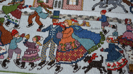 Мой нынешний процесс вышивки - по схеме "Winter wonderland" из журнала "Cross Stitch & Country Crafts" сен/окт 1992. Процесс был начат в сентябре. Сначала вышил рамку (ее размер получился 23х28 см) и увенчающий в итоге весь дизайн - бант. Он в итоге придаст вышивке впечатление новогоднего подарка. А сама форма дизайна, как вы видите, не совсем обычная - восьмиугольная. Вышиваю на беломерке 30 каунта, мулине DMC - по ключу к схеме. По инструкции дизайн должен вышиваться на 28 каунте, используя три нити мулине...