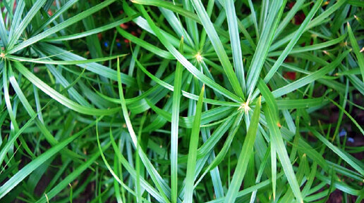 Многолетнее болотное травянистое растение, образующее куст, с тонкими, желтыми стеблями. Родина: африканские и малагасийские болота. Листья: злаковидные, узкие, длинные, расходятся на верхушках стеблей зонтиками. Цветы: желто-зеленые соцветия в центре прицветника сменяющиеся светло-коричневыми зернами - семенами. Местоположение: в самом светлом мести, но без прямых солнечных лучей. Лучшее место летом - балкон или сад. Земля: верховой торф, садовая земля и 20% удобрения на основе навоза. Подкормка:...