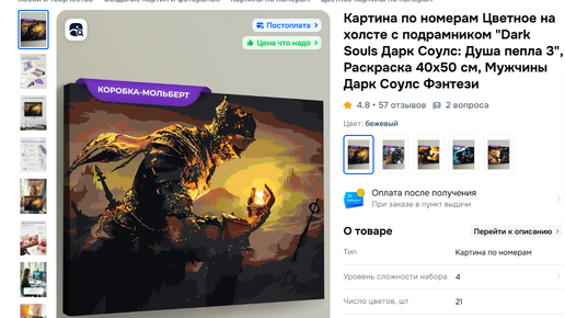 Обзор картины по номерам Цветное Dark Souls Дарк Соулс: Душа пепла 3
