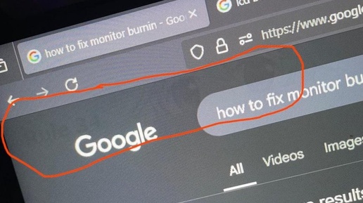 Чувак настолько часто сидел на R34-сайте, что его логотип въелся в OLED-монитор