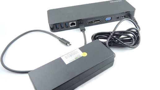 Сегодня на моем столе док-станция Toshiba Thunderbolt 3. Для меня как любителя периферии - абсолютная мечта, и сейчас я вам о ней расскажу. Что поражает при распаковке - вес. Toshiba Thunderbolt 3 Docking весит всего 380 гр. Благодаря прорезиненным выступам в нижней части, устройство не скользит по любой поверхности и говорит. Только размер адаптера питания Thunderbolt 3 немного пугает. Однако замечу, что устройство легко прячется под офисным столом и предлагает хороший функционал, например можно заряжать ноутбук параллельно через Thunderbolt 3 с USB-C от Toshiba...