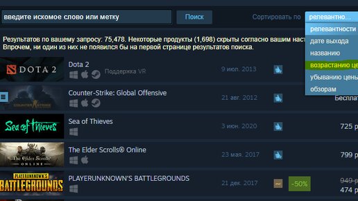 Всем привет, долго не заходили в Steam, а теперь не можете пользоваться ТП, потому что вы не покупали игру? Но все игры стоят больше 200 Р. Для этого мы заходит в магазин, нечего не набирая, нажимает на поиск, и фильтруем по цене...