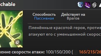 Скорость атаки (атак спид) - частота, с которой атакует юнит, измеряется в скорости атаки. Скорость атаки юнита может быть изменена предметами, ловкостью, способностями и аурами. Скорость атаки у большинства героев изначально составляет 100 единиц, но есть исключения. У скорости атаки есть 2 значения: Первое это пауза между атаками измеряется в секундах (именно такую паузу делает ваш герой между атаками). Второе число абстрактное, все скиллы и предметы напрямую влияют на это число, а оно в свою очередь уменьшает задержку между атаками...