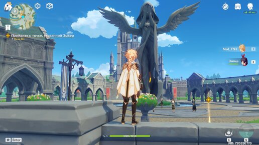 Всем привет! Сегодня мы продолжаем играть в Genshin Impact! Пока просмотры не набираются, но, мне кажется лишь потому, что яндекс рекомендует мои публикации лишь тем, кого интересует майнкрафт, ведь 99% моего контента - майнкрафт, однако я не сдаюсь, и сегодня выйдет две статьи, эта и одна про майнкрафт Приступим! В прошлой части мы начали играть и подобрались уже к городу, но сейчас я встретил ещё одну точку телепортации, которую я, естественно, не пропустил и активировал) Эмбер сказала нам атаковать...