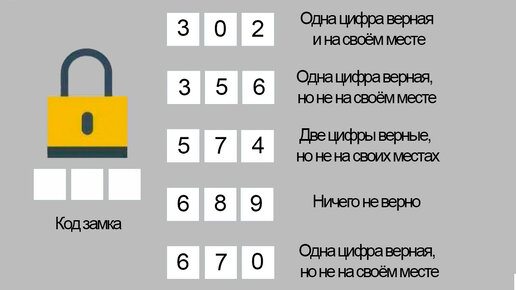Сможете подобрать код от сейфа? Я тут попробовал и выяснил некоторые моменты, которые смогут Вам помочь. Взгляните, я показал всё на картинке. Посмотреть ответ Ставьте лайк и подпишитесь на канал, чтобы...