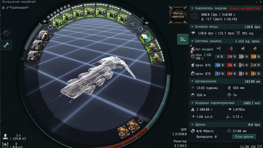 EVE Online. Эсминец Cormortant для дальнего боя.