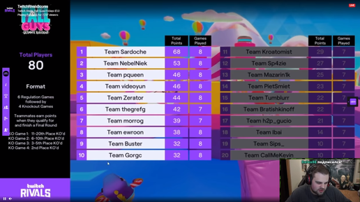 Здравствуйте! Сегодня хотел бы вас ознакомить с Первый прошедшим турниром по fall guys! На днях (05.09.2020) прошел первый турнир по игре fall guys! В нем приняли участие не небезызвестные люди как: cheatbanned, Слава Buster и Марк...