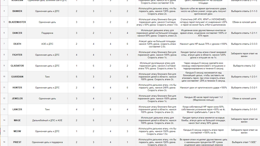 Решил сделать для вас удобную табличку со скилами и характеристиками персонажей игры Tap Fantasy.