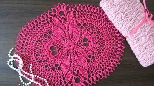 Салфетка крючком овальной формы с рельефными элементами - схема и видео