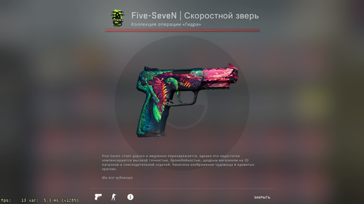 1. Five-SeveN | Капилляры. Нашу подборку открывает скин Five-SeveN | Капилляры. Красивый и очень дешевый скин. В качестве После полевых испытаний цена составляет 5 рублей. На корпус нанесён замысловатый узор из синих и коралловых вен. 20 на 100. Коллекция «Спектр» 2. Five-SeveN | Испытание огнём. В качестве После полевых испытаний цена составляет 5 рублей. а фиолетовую основу с металлическими частицами нанесён узор в виде серебряного пламени. Обнаружен элемент: цезий. Коллекция «Решающий момент» 3...