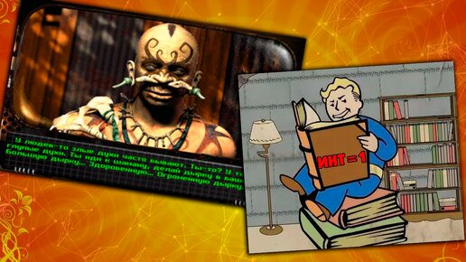 Смешные диалоги персонажа в игре "Fallout 2" с интеллектом на 1