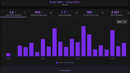 Привет! Порядка года, я обитал только на Ютубе, но месяц назад решил делать рестрим на Твич и ВК. Что из этого получилось? Первый стрим был 24 апреля 2020. На картинке статистика за последние 3 недели: На фоне...