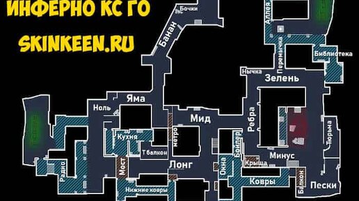 Карта Инферно в кс го Изучайте все обозначения позиций и мест на карте Инферно в кс го на русском языке вместе с нами, с командой skinkeen. Ниже будет подробное схематическое изображение точек на карте и на английском языке с расшифровкой на игровом русском сленге...