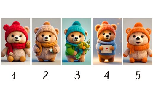 В нашей повседневной жизни мы часто ищем знаки и сигналы, которые могли бы подсказать нам, что ждет впереди. Психологический тест с использованием изображений — это один из способов, с помощью которого мы можем открыть для себя не только скрытые желания, но и возможные подсказки судьбы. Один из таких тестов использует изображения милых медведей, каждый из которых несет в себе определенный символ. Выбрав медведя, который вам больше всего нравится, вы не только узнаете о своих внутренних желаниях, но и, возможно, получите предсказание о том, какой подарок судьбы вас скоро ожидает...