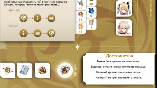 Нин Гуан: гайд на персонажа Геншин Импакт Ознакомься с новым мини-гайдом от Сенсея! Нин Гуан - величественная аристократка Ли Юэ, умеющая грамотно управлять государством. Каждый год в своем небесном дворце, находящимся прямо над Ли Юэ, Нин Гуан заполняет документы и решает важные вопросы. Не успеет место на доске закончиться, как она уже принимает верное решение, а после разрывает листы на мелкие куски и выбрасывает в окно...
