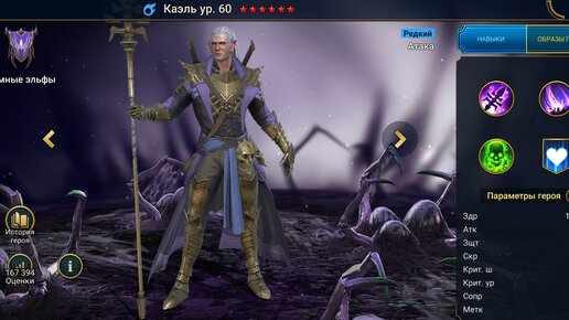 Каэль гайд на героя. В этом гайде мы рассмотрим героя Каэль, лучший стартовый герой, который поможет новичкам в начале игры. Каэль - Редкий герой атаки стихии магии из фракции Темные эльфы. Навыки: 1. Удар тьмы - Атака по врагу. С вероятностью 80%(с книгами 100%) накладывает Яд 2,5% на 2 хода. Урон зависит от АТК. 2. Кислотный дождь - Атака по всем врагам. Шанс критического удара + 15%. За каждого убитого врага заполняет свою шкалу хода на 25%. Урон зависит от АТК. Перезарядка 3 хода. 3. Распад - Атакует случайные цели 4 раза...