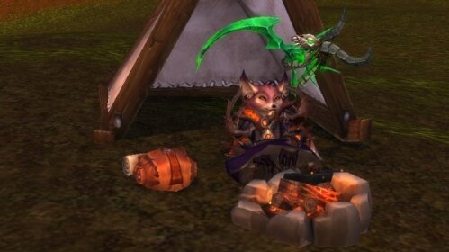 У союзной расы вульпер имеется довольно интересное, хотя и весьма простое по своему действию расовое умение. "Разбить лагерь" при использовании создает в любом месте открытого мира маленькую палатку с костром, куда персонаж при повторном использовании той же способности телепортируется. В момент телепортации игроку показывают небольшую сценку, в которой караванная кибитка подбрасывает его к его же временному жилищу. Разбить лагерь – Разбить лагерь в этом месте. Можно использовать только вне помещений...