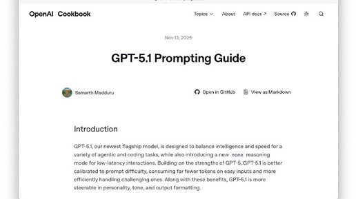 OpenAI представили подробный гайд по промтингу модели GPT-5.1. В нем объясняются способы максимизации эффективности новой модели. Вы найдете инструкции по работе с агентами, написанию кода, а также новинкам и метапромтам...