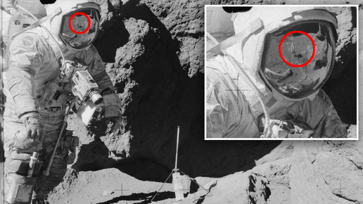Странное отражение в стекле скафандра астронавта Аполлон-17