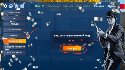 В начале игры , нужно ввести промокод ALEN , который вам дась VIP статус на 10 дней , X2 Зарплаты и деньги , пока вы будите прокачивать свой LVL : F10 на клавиатуре - Шестеренка - Приглашения - *вводим...