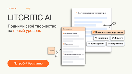Не важно, пишете вы первый роман или доводите до ума сочинение - LitCritic AI предоставит вам полный и исчерпывающий анализ: от короткой главы до всего произведения целиком. Получите не общие фразы, а конкретные рекомендации, основанные на вашем тексте. Быстрая, структурированная обратная связь по главам: сюжет, персонажи, ритм, диалоги и стиль. Можно проанализировать все произведение целиком (до 600 000 знаков) или анализировать отдельные главы и отрывки, получая исчерпывающую обратную связь для каждого отрывка...
