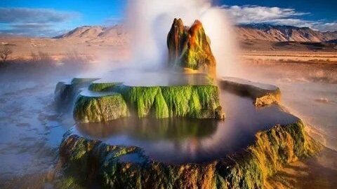 Гейзер Флай - редкий гейзер, расположенный в штате Невада, США, который известен своими впечатляющими выбросами горячей воды и пара. Это чудо природы расположено в отдаленном районе Невады и является популярным местом для любителей природы и геологии. Гейзер Флай уникален тем, что это один из немногих гейзеров в мире, который извергается регулярно, со средним интервалом около двух часов. Извержение может длиться несколько минут и достигать высоты до 15 метров. Гейзер подпитывается сочетанием горячей воды и пара, которые с огромной силой извергаются из земной поверхности...