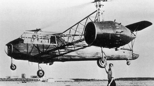 академик Б. Юрьев // «Известия» № 58 (8668) от 10.03.1945 г. [3] Внимание широких авиационных кругов привлечено к проблеме геликоптера. Геликоптер — летательный аппарат, не имеющий крыльев. Он поднимается в воздух с помощью больших винтов, тянущих машину прямо вверх. Такая машина не нуждается в аэродромах, так как она может подниматься и спускаться вертикально с весьма ограниченной площадки. Она способна взлетать и садиться на плоские крыши домов. Геликоптер может висеть совершенно неподвижно на одном месте в воздухе...