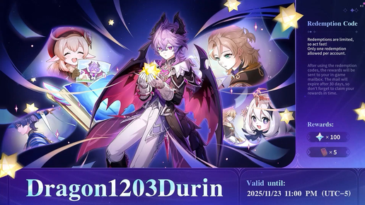 HoYoverse выкатили второй промокод со стрима версии 6.2, и время на активацию снова ограничено. Не забудьте поделиться с друзьями, чтобы они тоже успели забрать бесплатные примогемы! Промокод действует до 24 ноября, 07:00 по МСК, затем будет недоступен. 👇 Нажмите на код, чтобы быстро скопировать: ⭐ Dragon1203Durin 🎁 Награда: 100 примогемов Есть два простых способа: Перейдите по ссылке и войдите в...