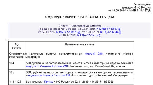 Коды налоговых вычетов по НДФЛ - таблица на 2023 - 2024 гг.