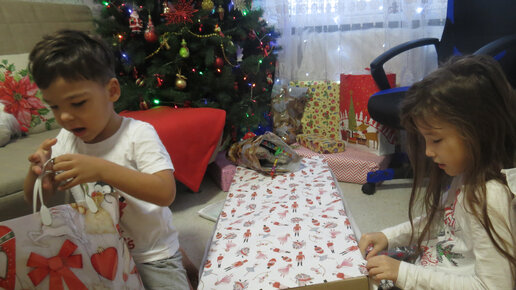 Прошедший год для нашей семьи был морально очень тяжелым и честно я очень рада, что он наконец закончился. Так что этот Новый год мы встречали под девизом ЛАЙТ! Никто, никуда не торопился. С утра ребятишки дали мне выспаться. Когда я их похвалила, Марго ответила, то они старались, так как боялись. Конечно, угроза остаться дома и лишиться половины подарков была очень страшной :))) Но при этом Маргоша призналась, что они тихонечко бегали в зал, что бы посмотреть на подарки :))) А разбудил меня Егорка...