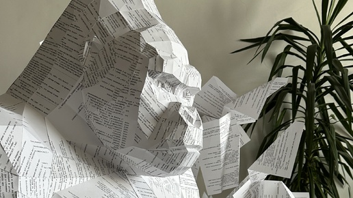 Скульптор: Илья Александрович Гурко Горилла собирает бумажного журавлика, достигла дзена и начала левитировать, вокруг неё начал образовываться вихрь из листов с кодом.
