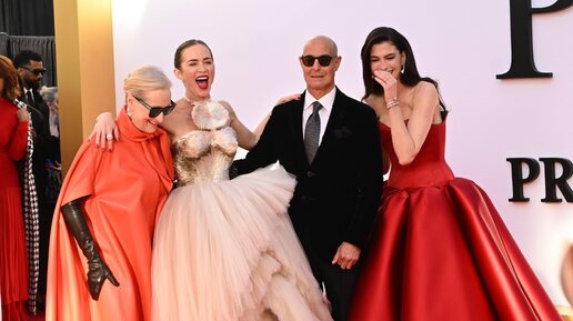 👠 Энн Хэтэуэй выбрала для главной премьеры наряд от Louis Vuitton, созданный Николя Гескьером, Мерил Стрип надела платье-кейп от Givenchy, разработанное Сарой Бертон, а Эмили Блант предпочла образ из коллекции высокой моды Schiaparelli весна 2026...