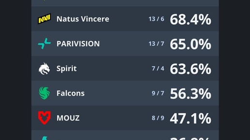 🔝 Текущие топ-10 команд HLTV по винрейту на пиках соперника
