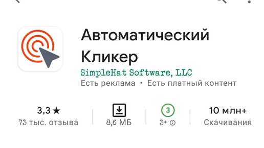 3 место: Нажмите ассистент - Автокликер Андроид: 7.0+ Доступен в play маркет Есть vip https://play.google.com/store/apps/details?id=com.rise.automatic.autoclicker.clicker&hl=ru&gl=US 2 место: Auto Clicker - Automatic tap Андроид: 7.0+ Доступен в play маркет https://play...