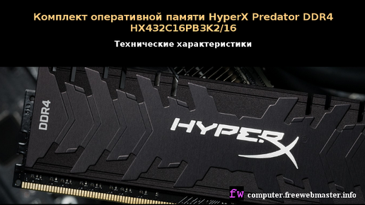 Комплект оперативной памяти hyperx predator ddr4 hx432c16pb3k2/16. Технические характеристики.